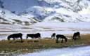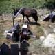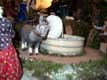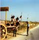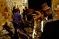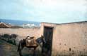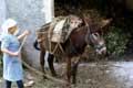 âne arnaché faisant tourner la roue du moulin pour irriguer les plantations