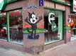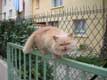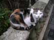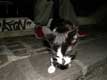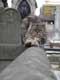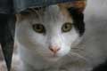Chat devant porte vitrée surmontée de l'inscription ave maria 1806