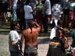 Homme tenant son visage dans ses mains est-il choqué par la femme nue derrière lui ?